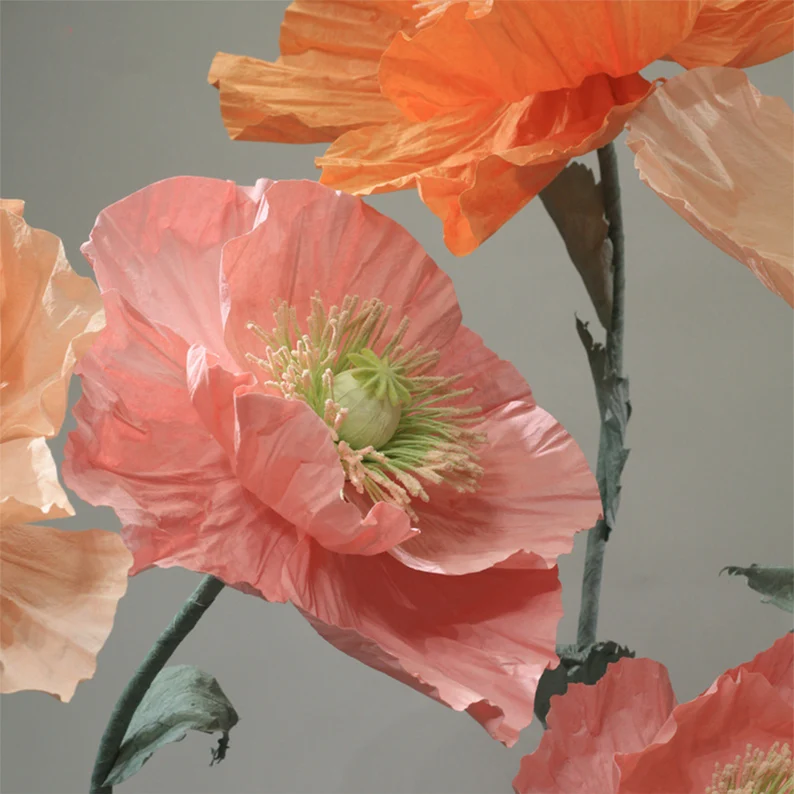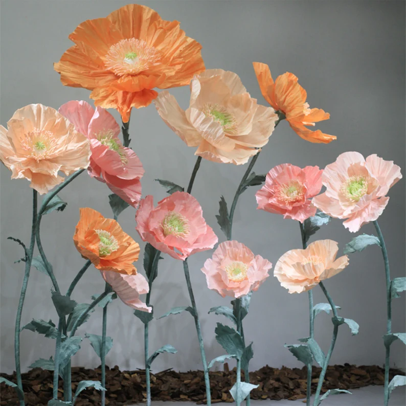 Our free-standing giant paper flower set is made of iron and special fiber paper, outdoor waterproof, vivid details, the iron base is not easy to fall over, the pole can be bent for easy landscaping, perfect for weddings/parties/stage decorations/window sales/photography props and any other occasion.